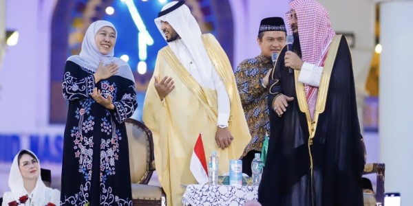 Telusur.co.id - Gubernur Jawa Timur, Khofifah Indar Parawansa bersama Atase Agama Kedutaan Besar Arab Saudi untuk Indonesia,