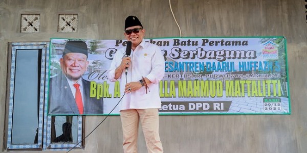 Telusur.co.id - Ketua DPD RI, AA LaNyalla Mahmud Mattalitti, melakukan peletakan batu pertama pembangunan Gedung Serbaguna