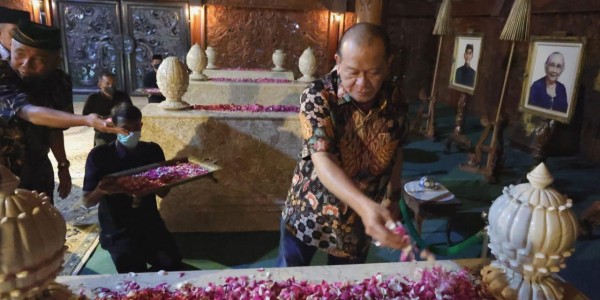 Telusur.co.id - Dengan berpakaian adat Jawa, Ketua DPD RI, AA LaNyalla Mahmud Mattalitti, berziarah ke Makam