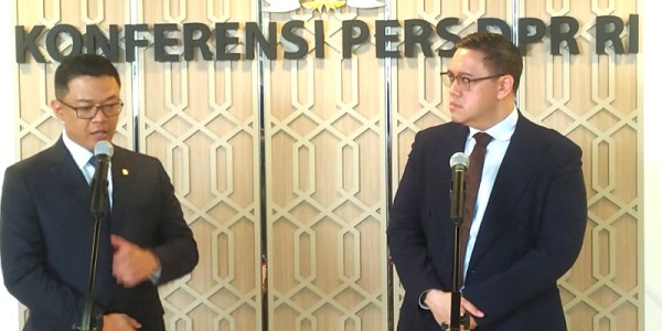 Telusur.co.id -Menteri Luar Negeri Sugiono (kiri) didampingi Wakil Ketua Komisi I DPR Dave Laksono (kanan) menyampaikan
