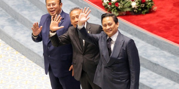Telusur.co.id -Deputi Gubernur Bank Indonesia (terpilih) Thomas Djiwandono (kanan), bersama Wakil Ketua DPR Saan Mustopa (tengah)