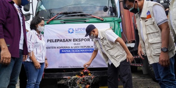 Telusur.co.id - Menteri Koperasi dan UKM Teten Masduki melepas ekspor produk briket arang balok dari UKM
