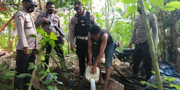 Telusur.co.id - Seorang pemilik usaha produksi miras jenis cap tikus di Desa Samalore, Kecamatan Toili, Kabupaten