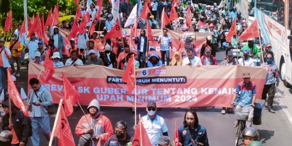 Telusur.co.id - Ratusan orang buruh yang tergabung dalam Partai Buruh dan berbagai organisasi serikat buruh melakukan
