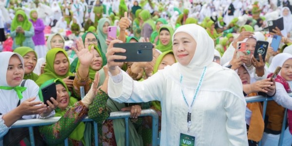 Telusur.co.id - Gubernur Jawa Timur, Khofifah Indar Parawansa mendampingi Presiden Republik Indonesia Prabowo Subianto menghadiri puncak peringatan