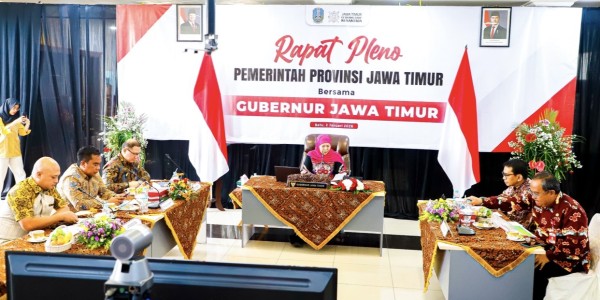 Telusur.co.id - Gubernur Jawa Timur, Khofifah Indar Parawansa memimpin Rapat Pleno Pemerintah Provinsi Jawa Timur lewat zoom