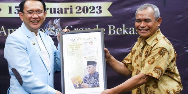 Telusur.co.id - Pelaksana tugas (Plt) Wali Kota Bekasi, Tri Adhianto, mendapatkan penghargaan Wali Kota Teristimewa di
