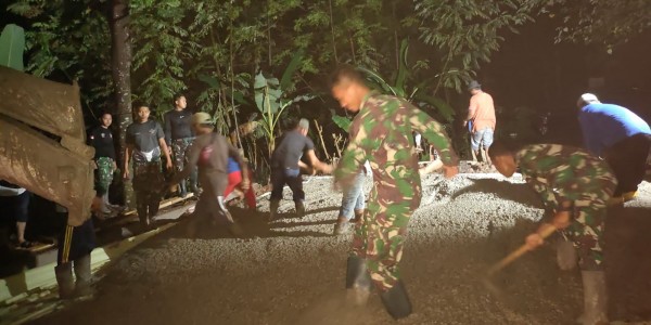 Telusur.co.id - Kebersamaan warga dengan personel Satgas TMMD ke-113 Kodim 0619/Purwakarta yang bekerja hingga malam di
