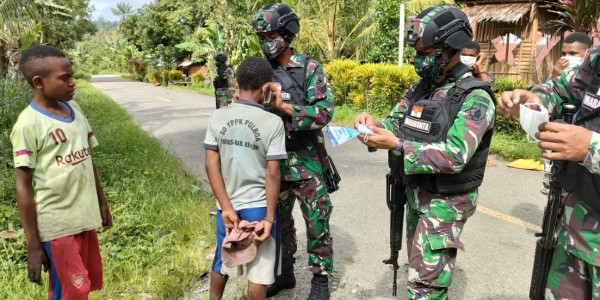 Telusur.co.id - Satgas Pamtas Yonif Mekanis 512/QY bekerja ekstra memutus rantai pandemi di Kabupaten Keerom, Papua. Upaya