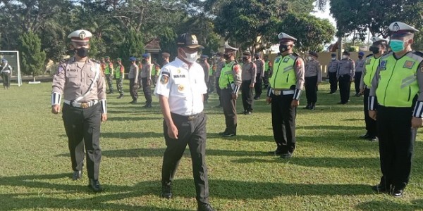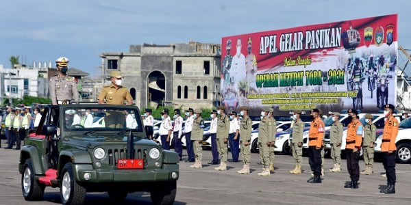 Telusur.co.id - Bupati Serdang Bedagai H Darma Wijaya memimpin apel gelar pasukan Operasi Ketupat Toba 2021