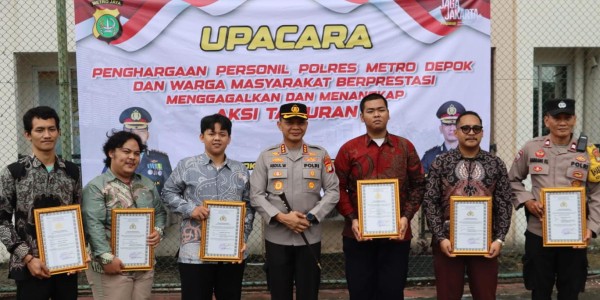 Telusur.co.id - Kapolres Metro Depok Kombes Abdul Waras memberikan penghargaan kepada sejumlah anggota dan warga yang