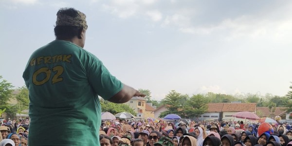 Telusur.co.id - Ribuan masyarakat banjiri lapangan Kecamatan Banjarharjo untuk menangkan kotak kosong di Pilkada Brebes 2024. Antusias