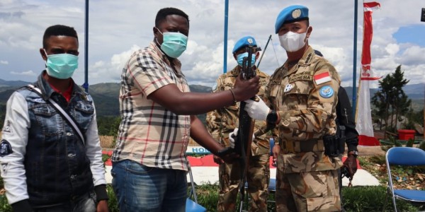 Telusur.co.id - Empat orang milisi menyerahkan diri beseta sepucuk senjata AK-47, 27 butir amunisi 7,62 mm