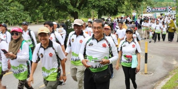 Telusur.co.id - Ratusan warga Indonesia mengikuti acara jalan santai di Taman Rekreasi Jalan Menteri Besar, Bandar