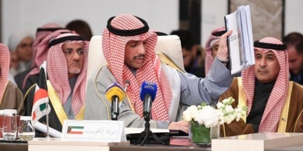 Telusur.co.id - Ketua Parlemen Kuwait Marzouq Al-Ghanim mencampakkan berkas-berkas berterakan prakarsa Presiden AS Donald Trump yang