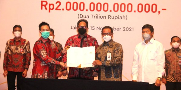 Telusur.co.id -Direktur Utama Bank DKI, Fidri Arnaldy (tengah depan) tengah berfoto bersama usai penandatanganan perjanjian kredit