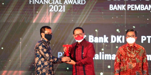 Telusur.co.id -Direktur Keuangan Bank DKI, Romy Wijayanto menerima penghargaan The Best Bank in Financial Resilience kategori
