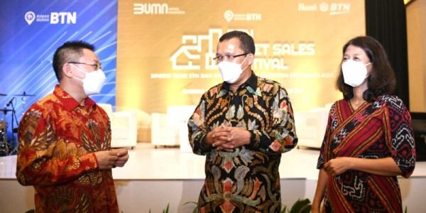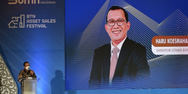 Telusur.co.id -Direktur Utama Bank BTN Haru Koesmahargyo (tengah) didampingi Direktur Wholesale Risk and Asset Management Bank