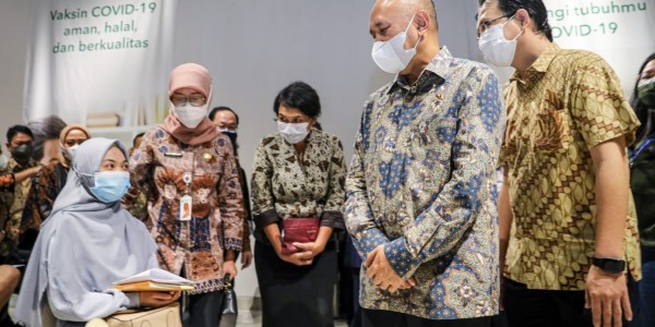 Telusur.co.id -Direktur Kredit UMK & Usaha Syariah Bank DKI, Babay Parid Wazdi (batik tengah) melakukan foto