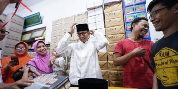 Telusur.co.id - Calon Wakil Presiden (Cawapres) nomor urut 2, Sandiaga Salahuddin Uno mendatangi kampung pembuat peci atau