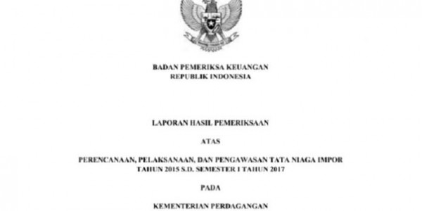 Telusur.co.id - BPK RI melakukan Audit tentang Tata Niaga Impor tahun 2015 hingga semester I 2017, yang