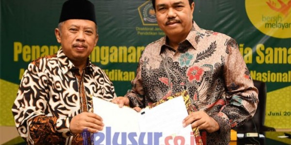 Telusur.co.id - Direktur PT Bank Tabungan Negara (Persero) Tbk. Budi Satria (kanan) bersama Sekertaris Direktorat Jenderal Pendidikan