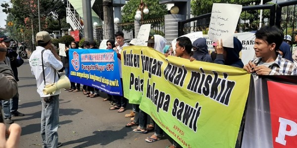 Telusur.co.id - Sejumlah massa dari Asosiasi Petani Plasma Kelapa Sawit Indonesia (APPKSI) menggeruduk kantor Kementerian Keuangan Republik