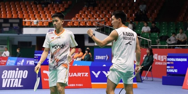 Telusur.co.id - Pasangan ganda putra Indonesia, Raymond Indra dan Nikolaus Joaquin, berhasil melaju ke semifinal Korea Masters